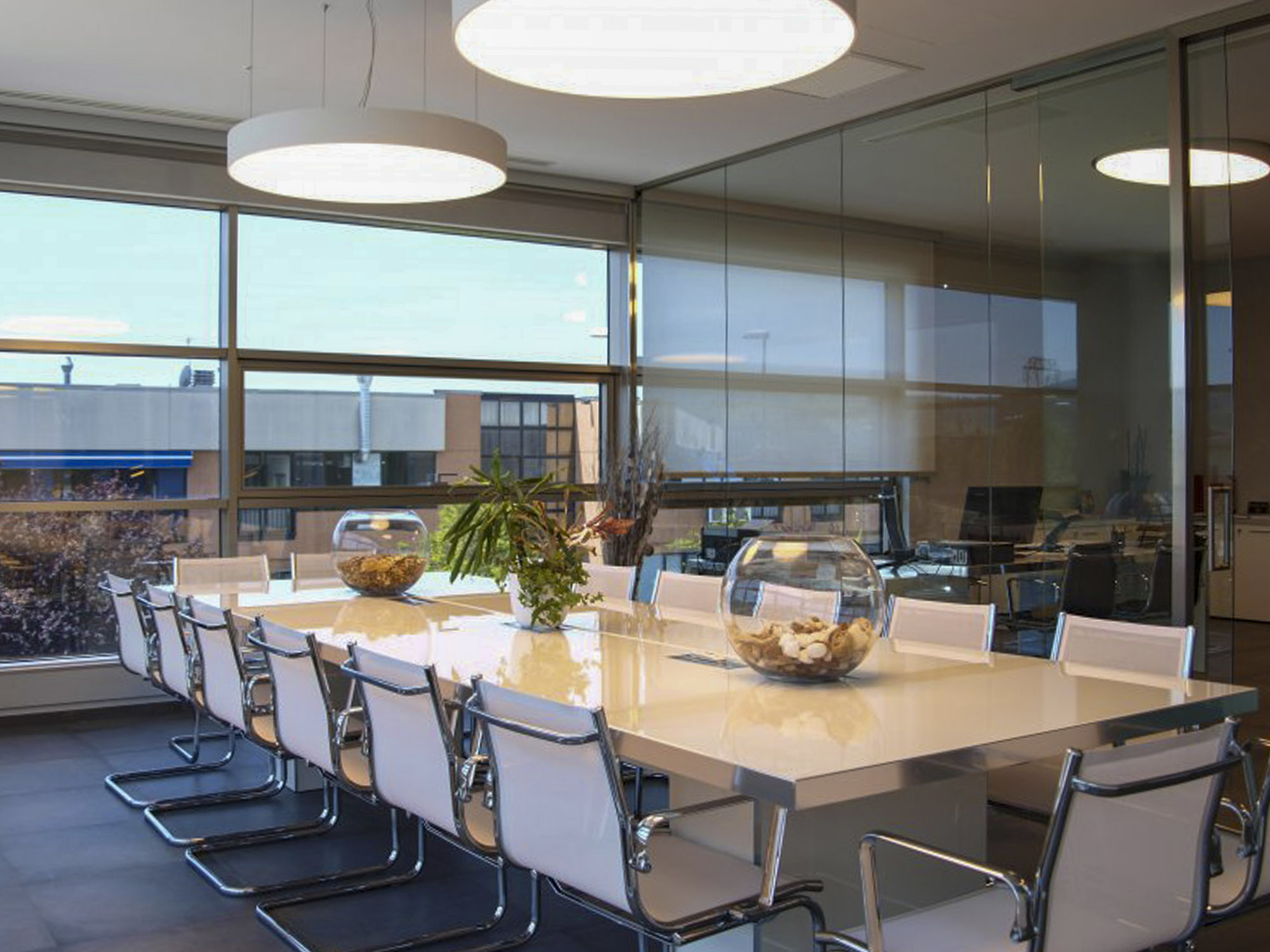 Gli spazi comuni integrano elementi naturali come piante tropicali e ulivi in grandi vasi che introducono verde e vitalità, mentre i dettagli cromatici in arancione nelle sedute delle aree relax spezzano la palette neutra dominante. Ogni elemento, dall’illuminazione scenografica alla selezione dei materiali, è orchestrato per creare una sede aziendale che rappresenta i valori di eccellenza tecnica e innovazione di Bandinelli & Forni Metalli, trasformando gli spazi di lavoro in un ambiente che bilancia funzionalità operativa e rappresentatività istituzionale.